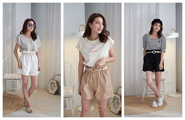 ⑤ B1907-239 寬版鬆緊帶中高腰短褲(2色)