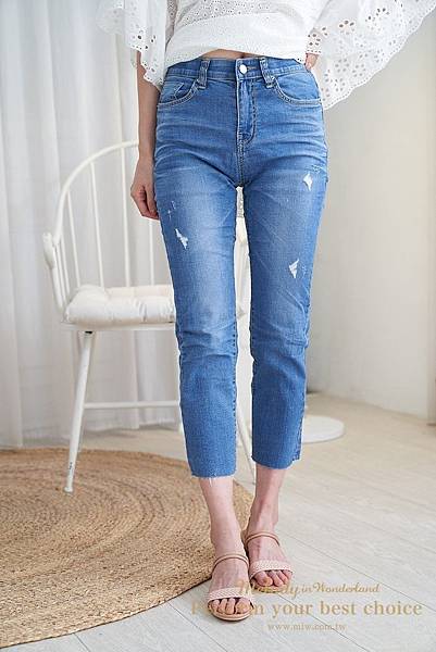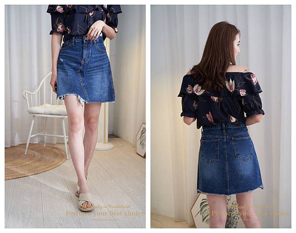 ②B1907-173 不收邊下擺刷破造型牛仔裙-穿L舒適有空間,可以挑M