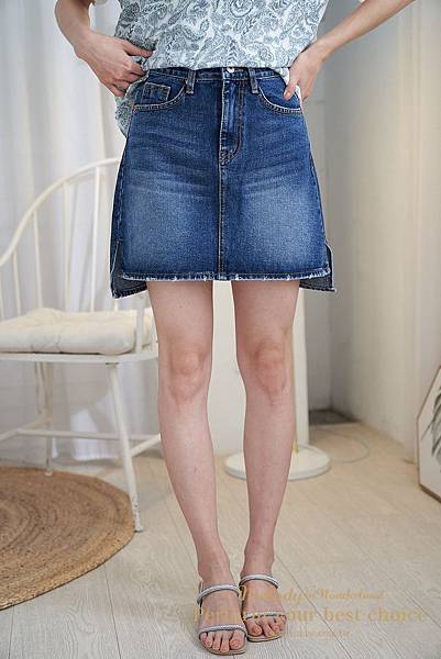 ①B1907-236 兩側下擺開衩不收邊造型牛仔裙(2色)-穿不下