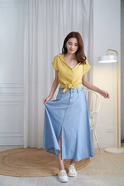③B1907-244 前短後長設計刷色牛仔裙-穿L拉起來勉強又扣不起來