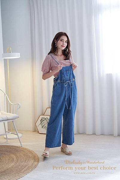 ①B1907-167 抽繩造型吊帶寬褲-穿M舒適