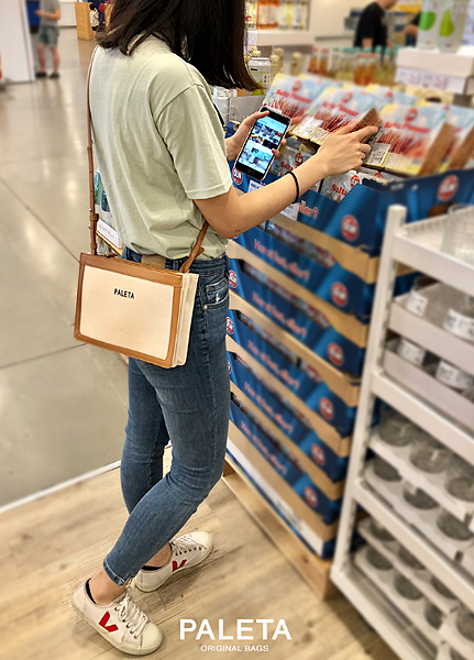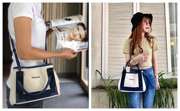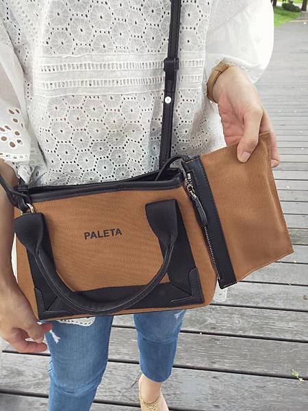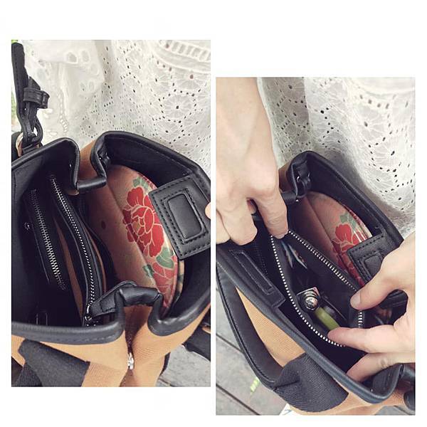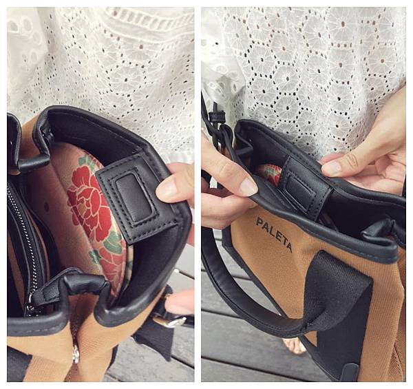 包包的材質是帆布&超纖皮革(比一般合成皮質感更好更接近真皮)