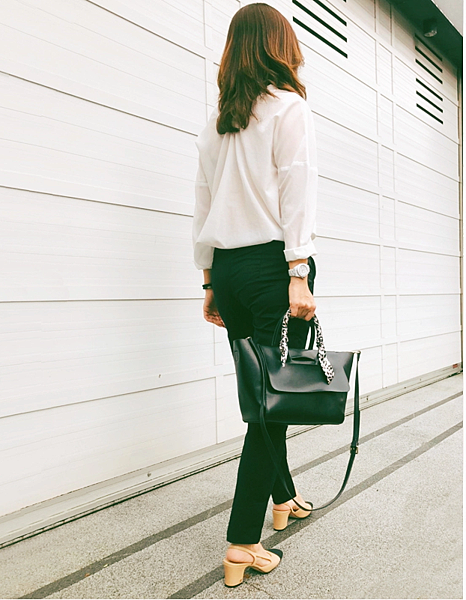 用手上的絲巾幫包包做出獨一無二的提把造型~