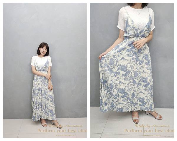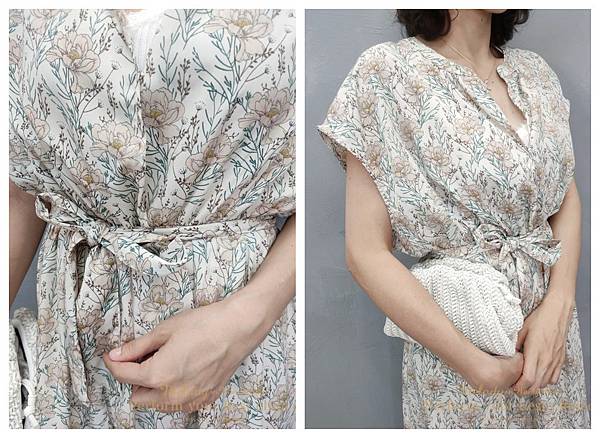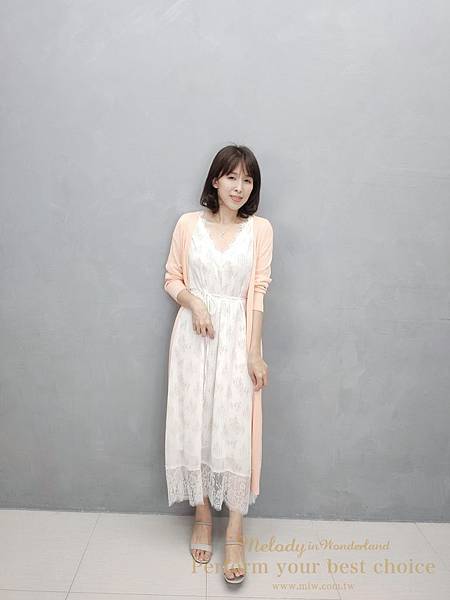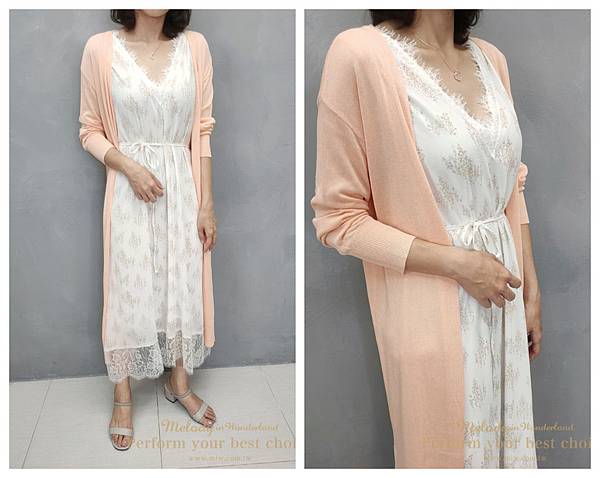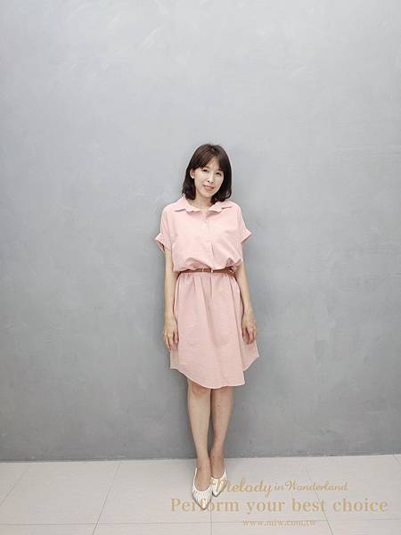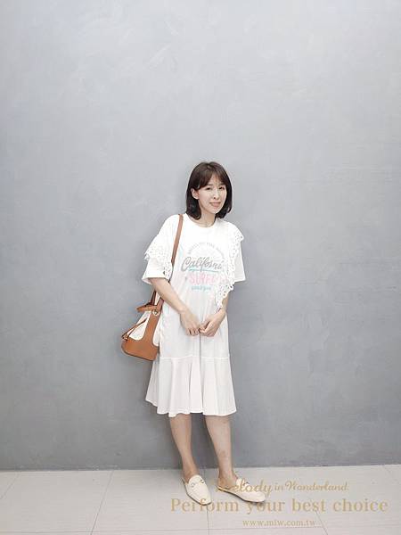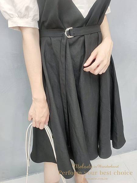 只能利用綁帶把洋裝長度拉短一點~