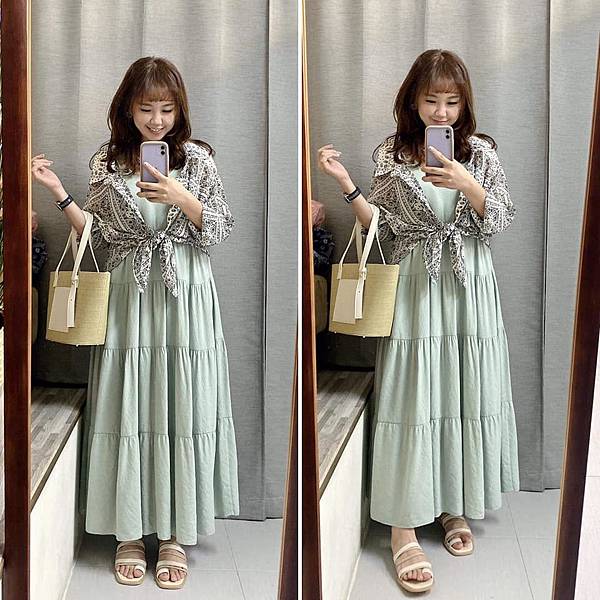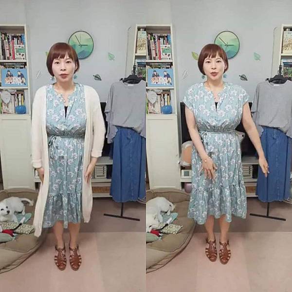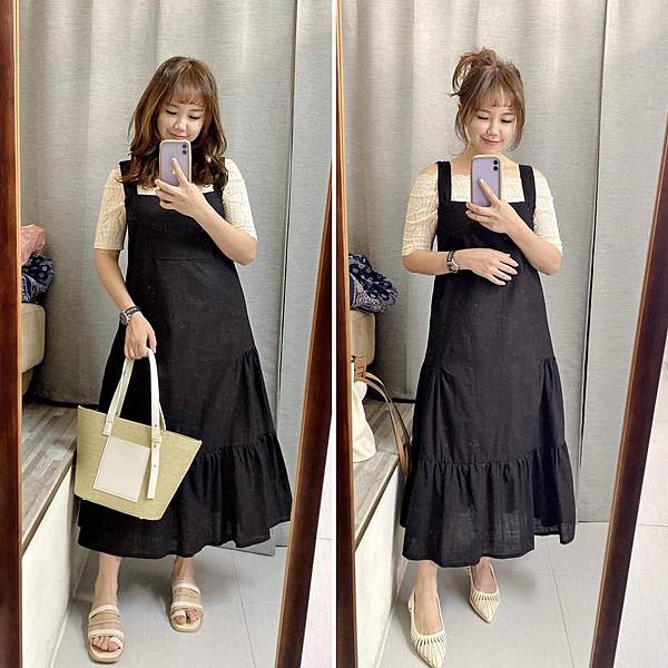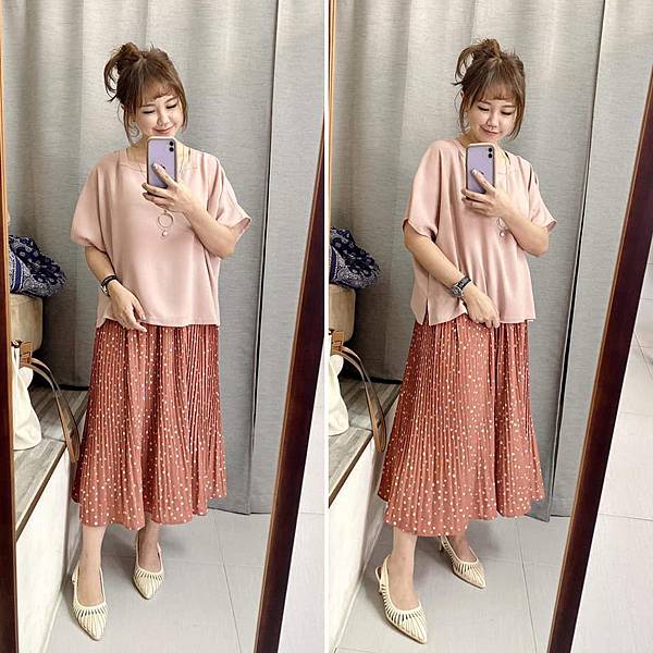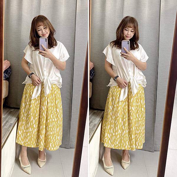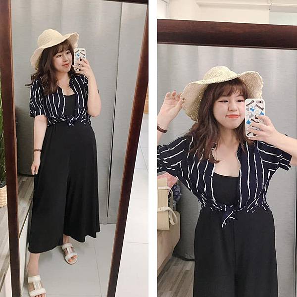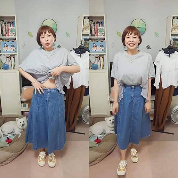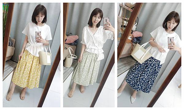 左邊那套,搭配方領上衣可遮小腹超氣質~