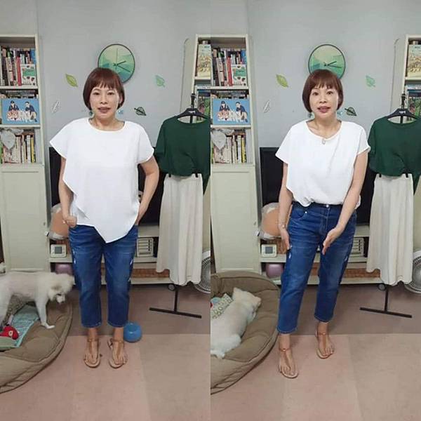 這邊補一張測拍照,瞧小千穿這寬褲,小腹平的咧~