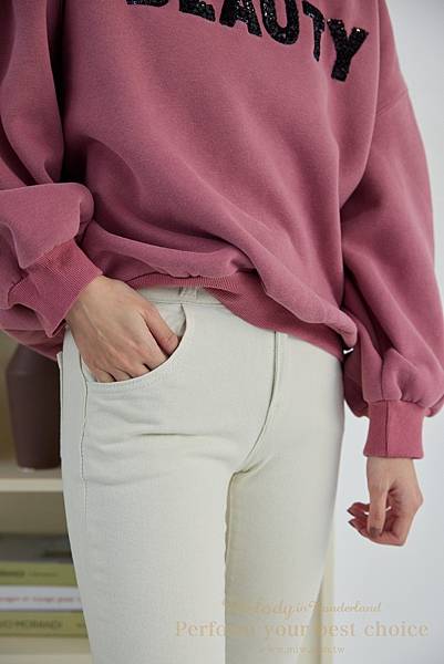 針對這款褲子沒有特別的刷色或是口袋及抓皺設計,