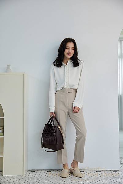 但偏米白的白褲,又特別適合搭配秋冬單品~