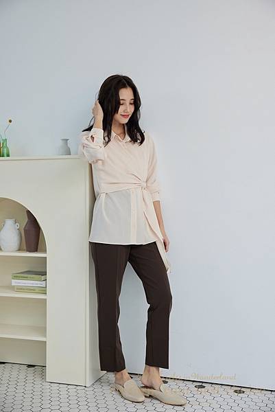 2012-103 不收邊褲管寬腰帶長褲(2色)