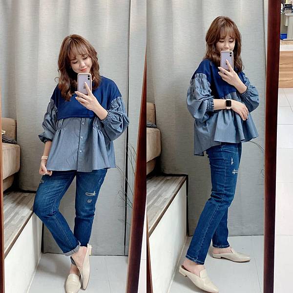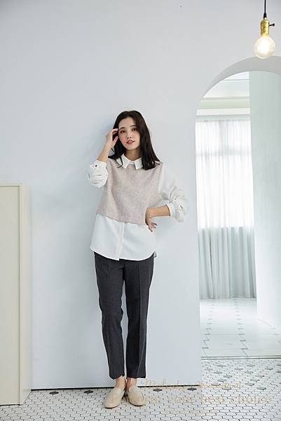 所以一定要遮啦~剛好搭上這款假兩件式的上衣~