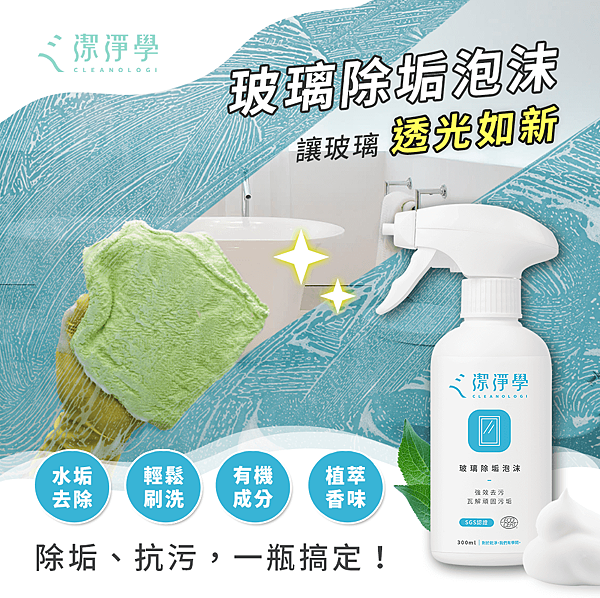 ✓ 鏡子、乾濕分離玻璃等各種玻璃材質去汙&去除陳年水垢-用玻璃除垢泡沫