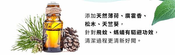 這項商品除了有清潔力外,還添加了蟲蟲最害怕的「茶樹精油」