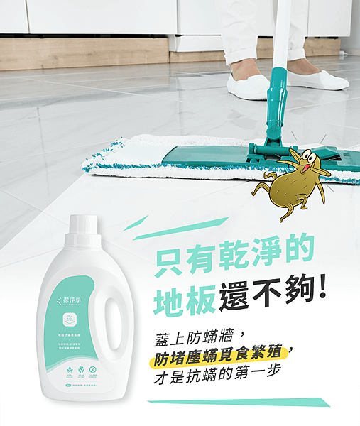 ✓ 地板去汙除垢,抗螨殺菌並防堵塵螨-用地板抗螨清潔液~