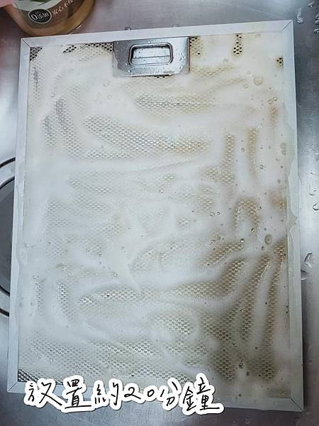 放 靜置20分鐘~等待泡沫將陳年油垢分解