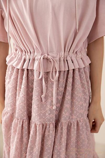 ➤2105-175 連帽綁帶菱格蕾絲裙洋裝 (4色)