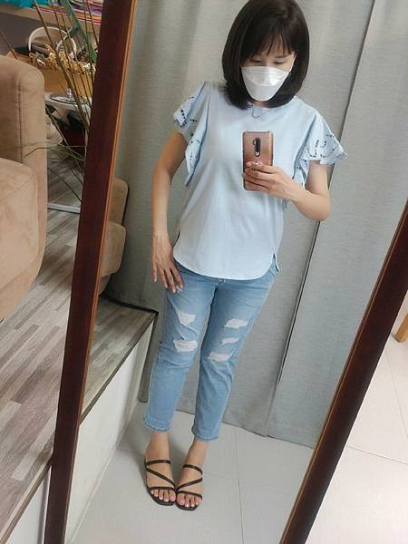 在意小腿線條的小千,牛仔褲穿的是L號~