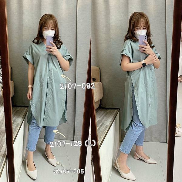 2107-082 斜襬造型前後大V領長版襯衫(5色)