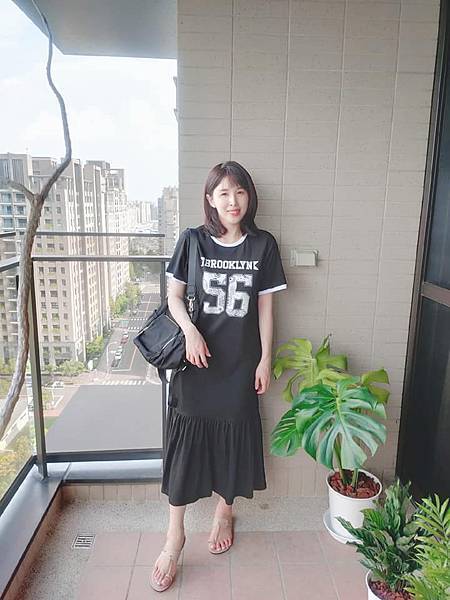 布料很特別,穿起來也很高挑修身~