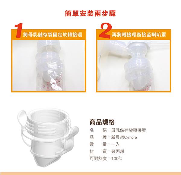 母乳儲存袋轉接環 1入 (寬口徑喇叭罩專用)