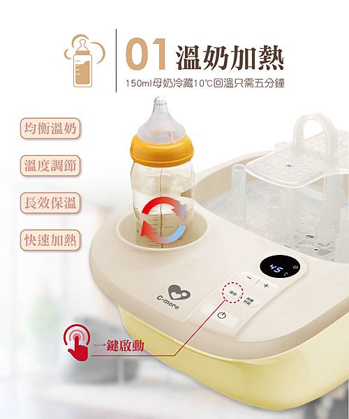 溫奶器+消毒鍋+烘乾機→三合一的機型