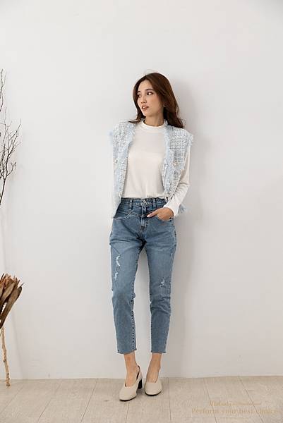 搭配可以顯比例且長度可修飾腰間肉的上身,