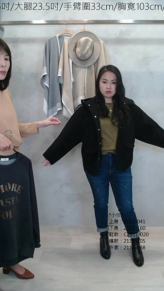 ✓小依160/66 腰35吋/臀40.5吋/大腿23.5吋/手臂圍33cm/胸寬103cm/肩寬40.5cm
