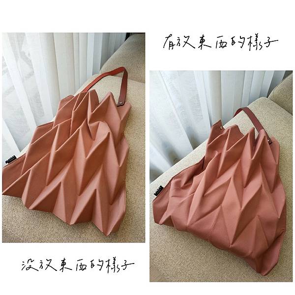 它的平面有摺度是可以擴張的,加上布料稍有厚度和挺度~