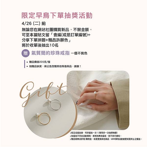 這次還舉辦了 #早鳥下單抽獎活動(4/26(二)前下單):