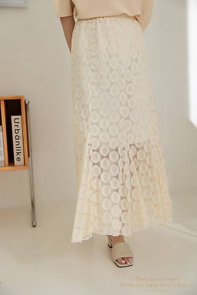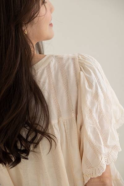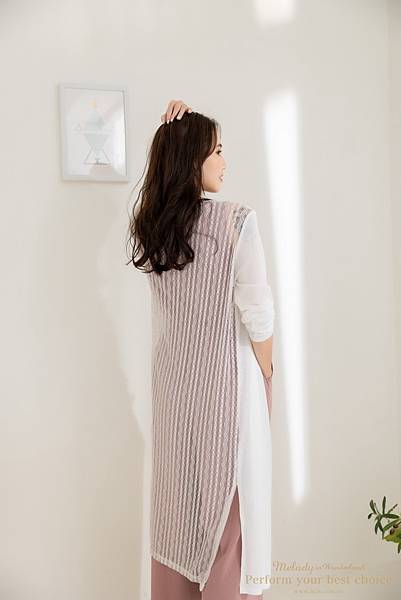 下擺睫毛蕾絲的透肌感,可以拉長身形比例~
