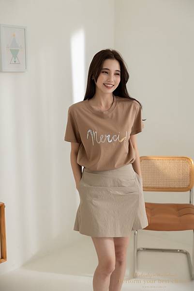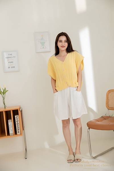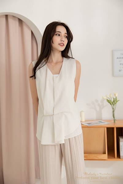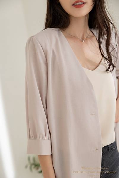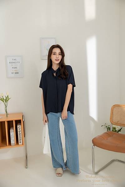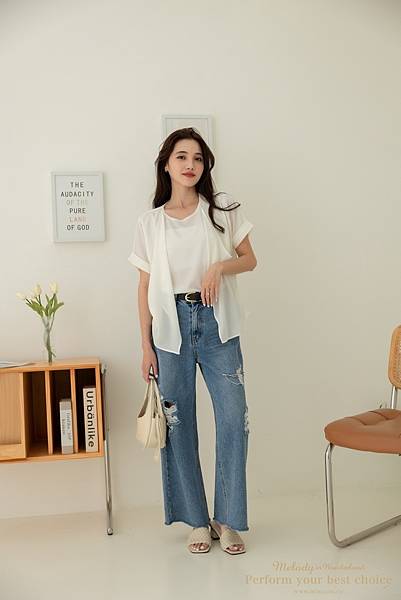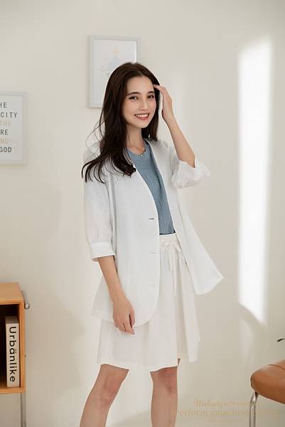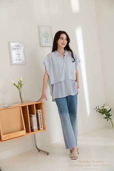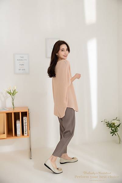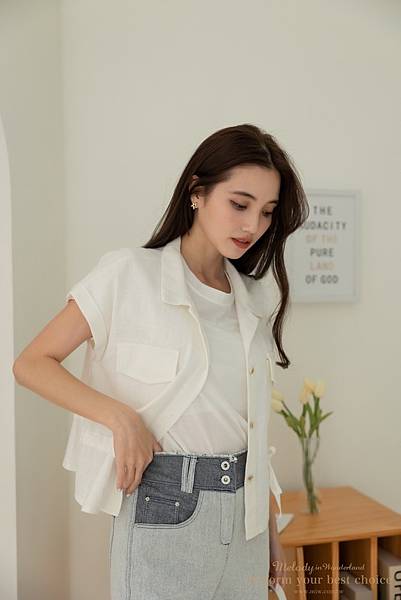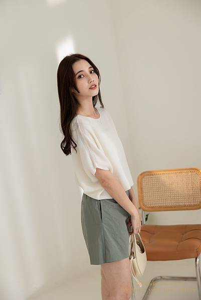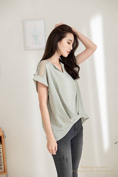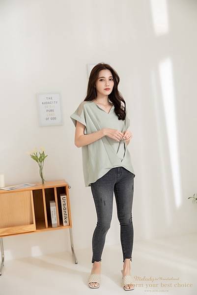 這邊我幫春妞搭上這件版型很修飾的上衣