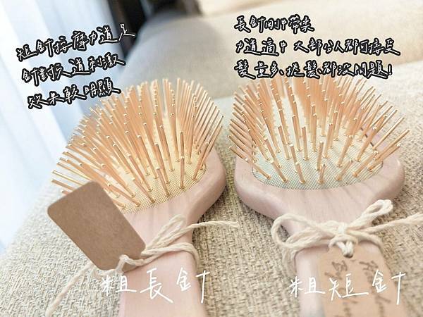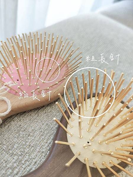 粗長針(右)的梳感也是明顯,但相較粗短針接觸頭皮的梳感,柔和許多~