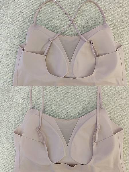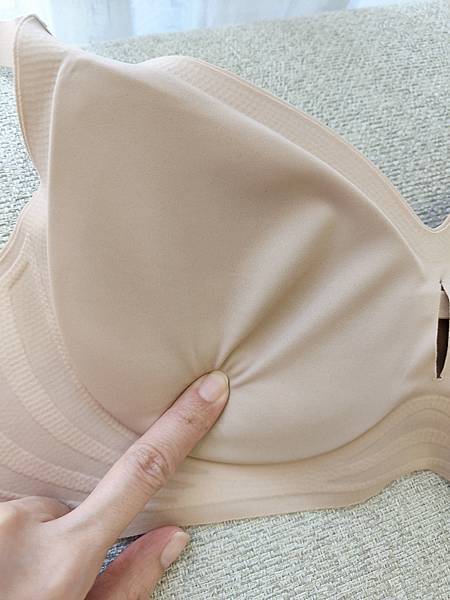 上薄下厚的胸墊,有稍微托高胸型的效果,