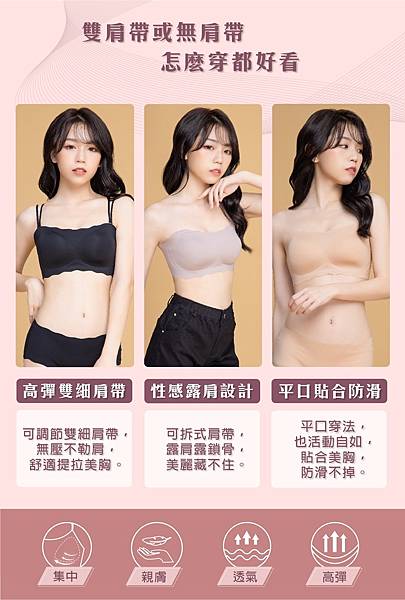 不僅能有效防止滑肩,對於胸部較有份量的朋友來說,